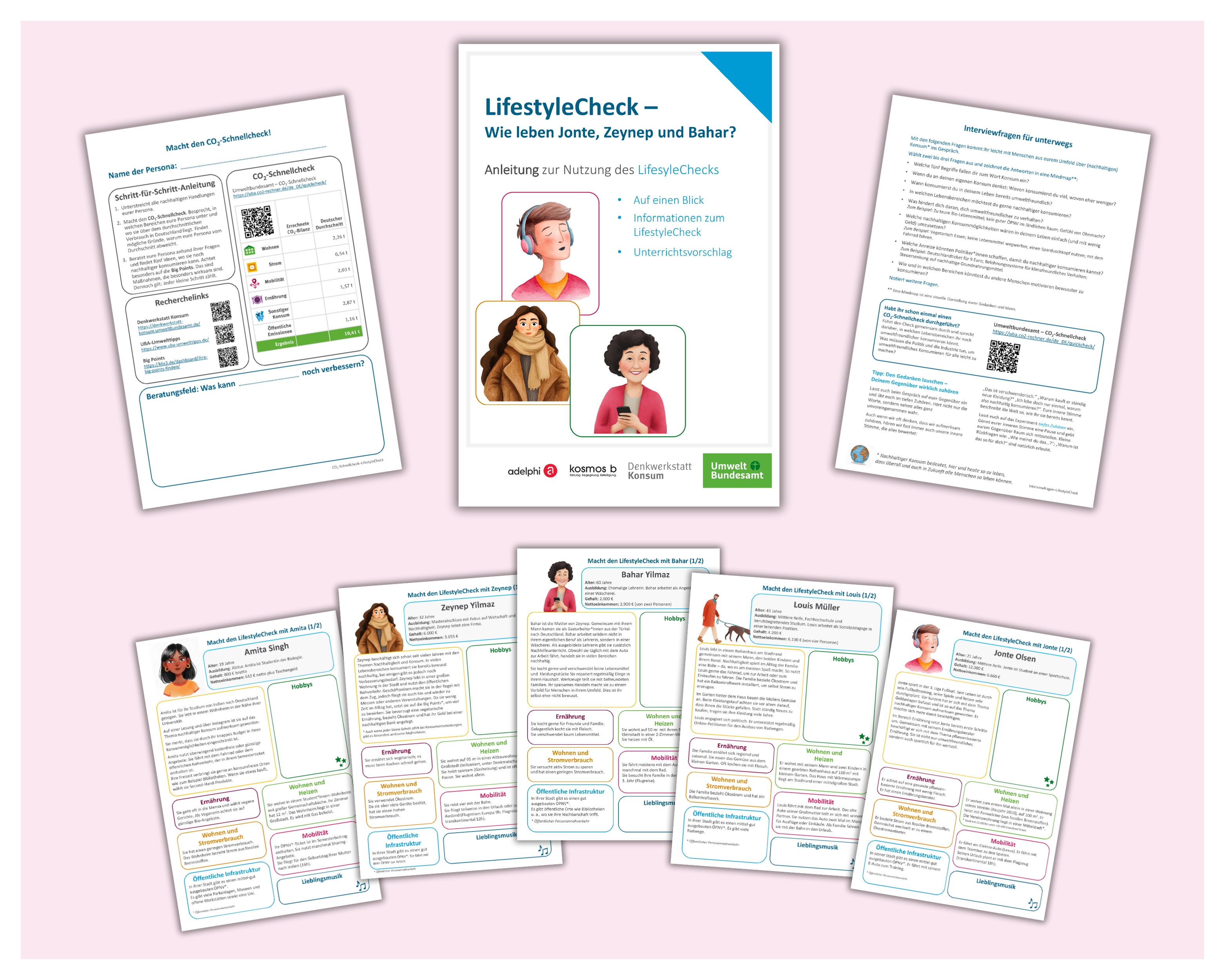 Das Bildungsmaterial LifestyleCheck der Denkwerkstatt Konsum des Umweltbundesamtes (UBA) ermöglicht es jungen Menschen ab Klasse 7 verschiedene Lebensstile und unterschiedliche Konsummuster kennenzulernen. Es eignet sich für die Schule und außerschulische Projektarbeit.