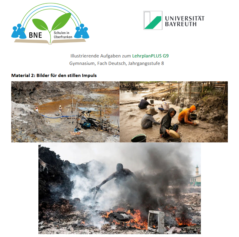 Die Unterrichtsbeispiele sollten zur Vernetzung und Inspiration weiterer Schulen beitragen und sind sortiert nach Schulart und Jahrgangsstufe aufgelistet. Bei allen Unterrichtsbeispielen sind jeweils die BNE-Kompetenzen, die bei der Anwendung der Materialien angebahnt werden sollen, und die empfohlene Stundenanzahl für den Unterricht angegeben. Sie werden außerdem auch über das Portal des Institut für Schule und Bildung (ISB) veröffentlicht.