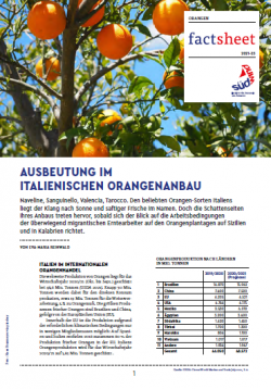 Naveline, Sanguinello, Valencia, Tarocco. Den beliebten Orangen-Sorten Italiens liegt der Klang nach Sonne und saftiger Frische im Namen. Doch die Schattenseiten ihres Anbaus treten hervor, sobald sich der Blick auf die Arbeitsbedingungen der überwiegend migrantischen Erntearbeiter auf den Orangenplantagen auf Sizilien und in Kalabrien richtet.
