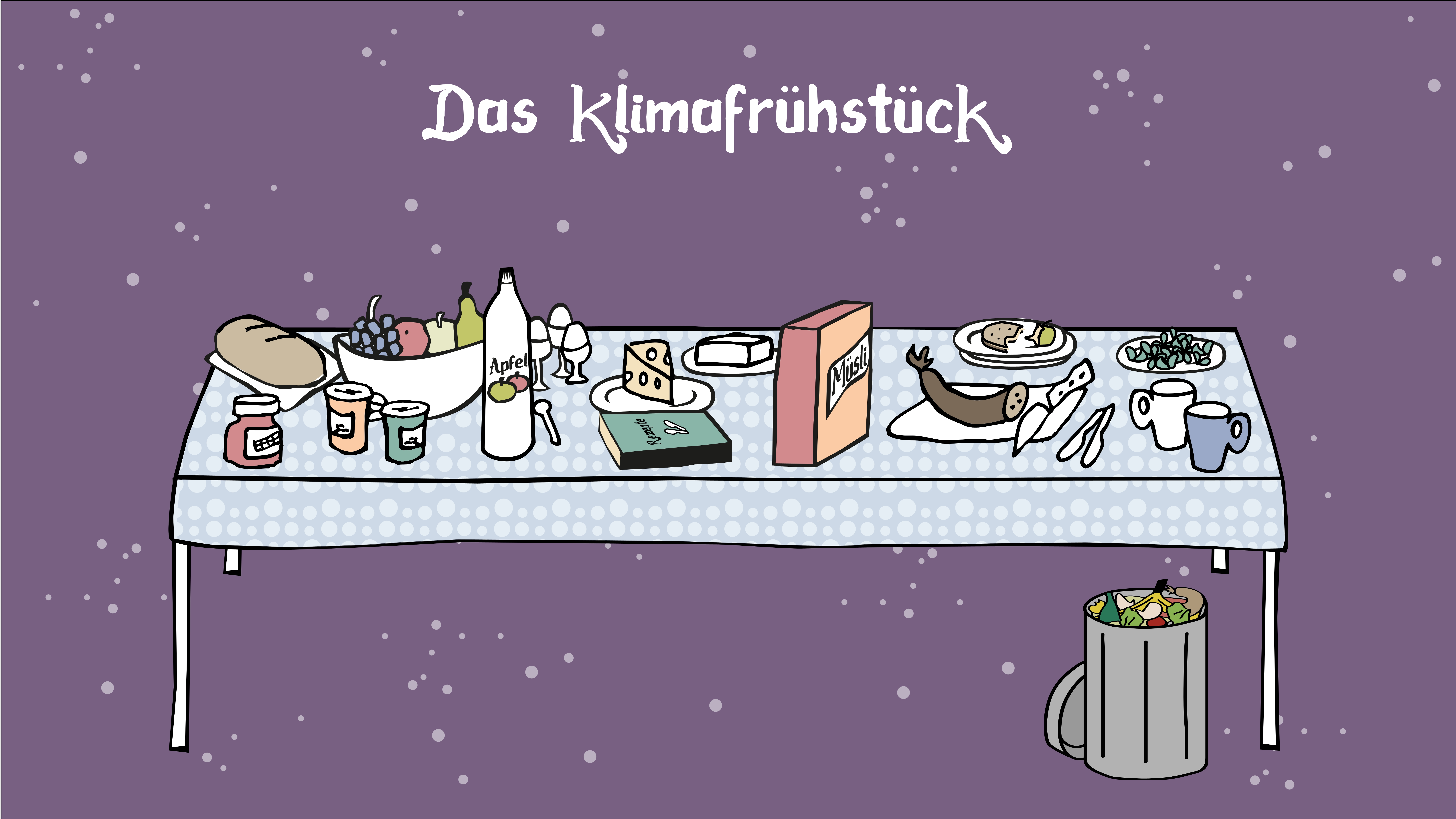 Kinder und Jugendliche der Sekundarstufe I können mit diesem interaktiven Frühstückstisch die Welt von Klima und Ernährung entdecken. Verschiedene Elemente auf dem Tisch sind anklickbar und laden dazu ein, spannende Spiele und Aufgaben zu entdecken. Hinter jedem Element verbirgt sich ein Thema wie Anbauart, Saisonalität, Verpackung, tierische und pflanzliche Produkte oder Lebensmittelverschwendung.