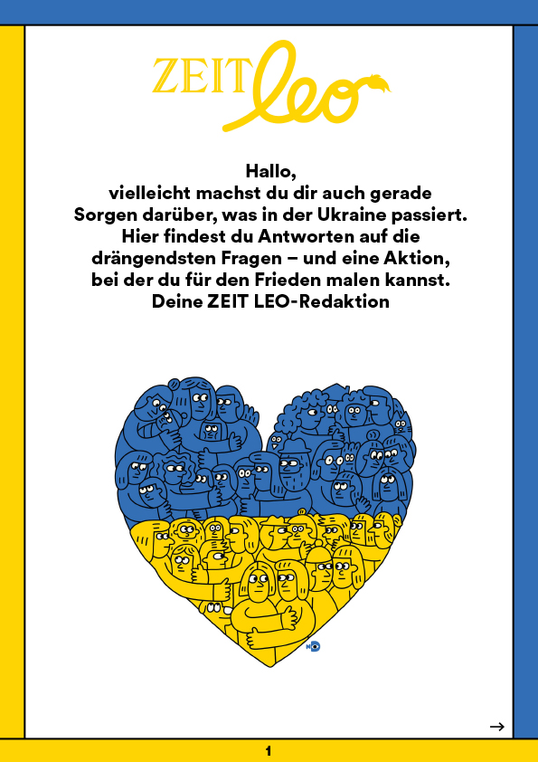 Nicht nur Erwachsene, auch viele Kinder haben gerade Fragen und Ängste, die auf Lehrkräfte natürlich besonders einprasseln. Daher hat ZEIT LEO eine Newsletter-Sonderausgabe herausgebracht, die Kindern in diesen Tagen Halt gibt. Es werden ruhige, klare Antworten auf die Fragen formuliert, die sich die jungen Leserinnen und Leser gerade stellen, und es gibt eine große Malaktion, an der sich alle als Friedensmaler beteiligen können.