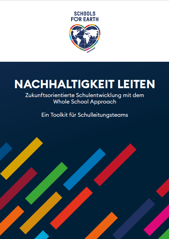 Die Handreichung „Nachhaltigkeit leiten – zukunftsorientierte Schulentwicklung mit dem Whole School Approach“ unterstützt Schulleitungen in diesem Prozess: